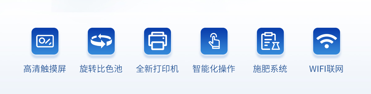 | 《機箱/藥劑一體式鋁合金機箱》專業設計,便于攜帶、堅固耐用,配套成套附件及成品藥劑 | 微電腦控制,數字化線路、程序化設計,液晶顯示,交直流兩用,可野外流動測試。 | 分辨率:0.001,觸摸式按鍵,內置新一代熱敏打印機,可打印測試結果。 | 可檢測化肥、有機肥(含葉面肥、水溶肥、噴施肥等)中的速效氮、速效磷、有效鉀、全氮、全磷、全鉀、有機質、酸堿度,鈣、鎂、硫、鐵、錳、硼、鋅、銅、氯、硅等各種中微量元素以及鉛、鉻、鎘、汞、砷等各種重金屬含量。 | 采用高亮LED燈光源、雙撥輪濾光式處理技術,保證光源波長穩定, 硅半導體作為信號接收系統,壽命長達10萬小時級別。光源穩定,重現性好,準確度高。 | 比色槽部分采用單通道設計,無機械位移及磨損,光路測試定位**,保證測定結果精度。 | 采用高精度濾光片技術,自主分析方法,保證檢測結果優于國標要求。 | 肥料打印結果為百分含量,測試誤差小于0.5%。 |